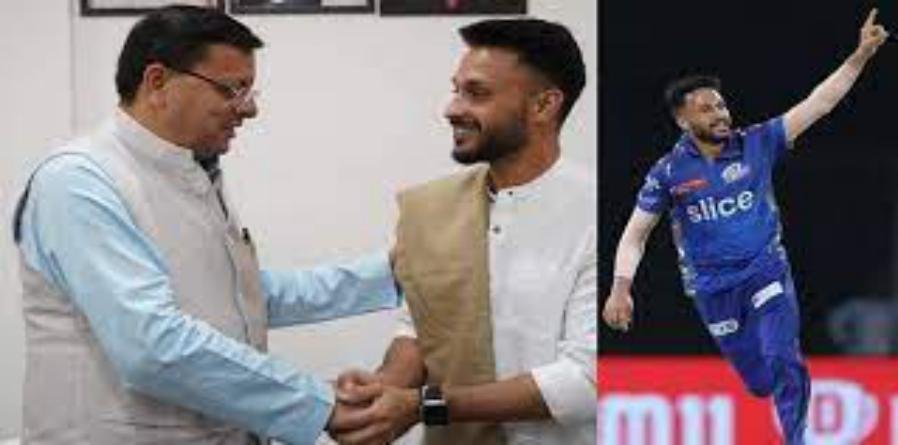 क्रिकेटर आकाश मधवाल ने सीएम धामी से मुख्यमंत्री आवास में की मुलाकात, आईपीएल में खेली थी शानदार पारी
