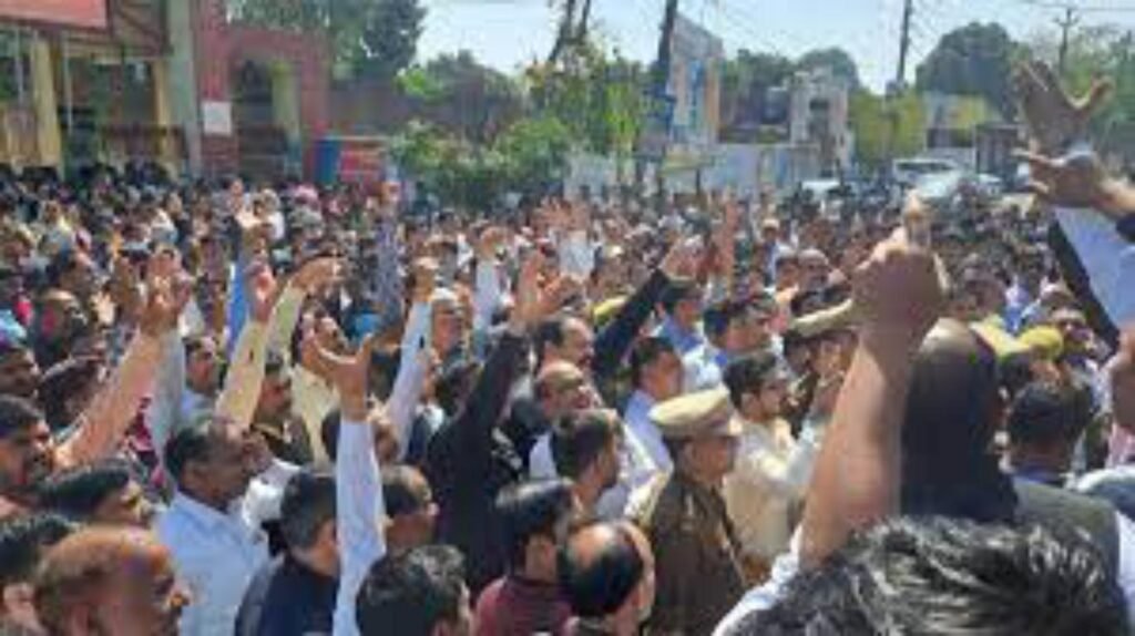 वहीं मुजफ्फरनगर में शिक्षक की हत्या के विरोध में सर्कुलर रोड पर चौधरी छोटूराम इंटर कॉलेज के सामने धरना प्रदर्शन कर नारेबाजी करते शिक्षक। पुलिस और प्रशासनिक अधिकारी शिक्षकों को समझाने में जुटे।