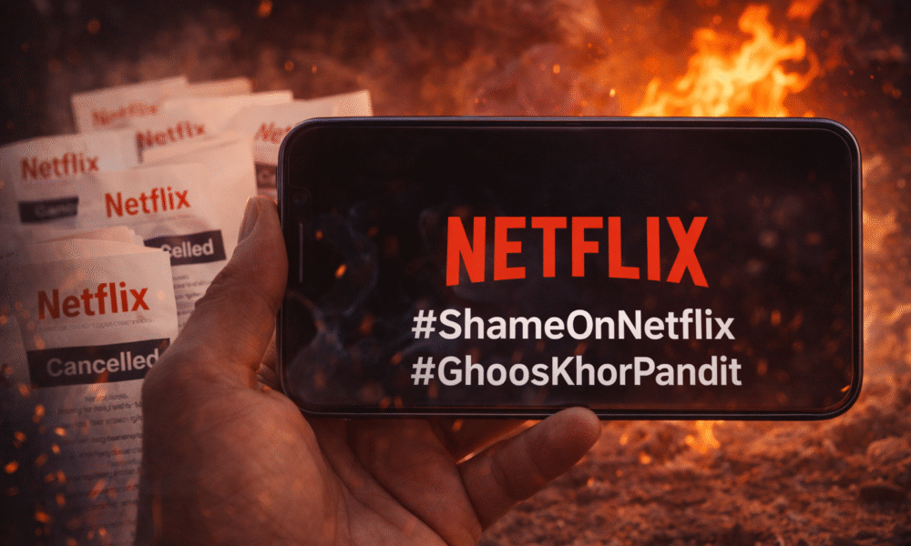 नई दिल्ली — भारत के डिजिटल परिदृश्य में मंगलवार को उस समय भारी हलचल देखी गई जब सोशल मीडिया मंच X (पूर्व में ट्विटर) पर #ShameOnNetflix और #GhoosKhorPandat हैशटैग टॉप ट्रेंड्स में शामिल रहे। यह ऑनलाइन विरोध वैश्विक ओटीटी दिग्गज नेटफ्लिक्स (Netflix) के एक आगामी प्रोजेक्ट के खिलाफ है। उपयोगकर्ताओं का दावा है कि इस प्रोजेक्ट का शीर्षक और इसकी संभावित कहानी एक विशेष समुदाय की भावनाओं को ठेस पहुँचाने वाली है।