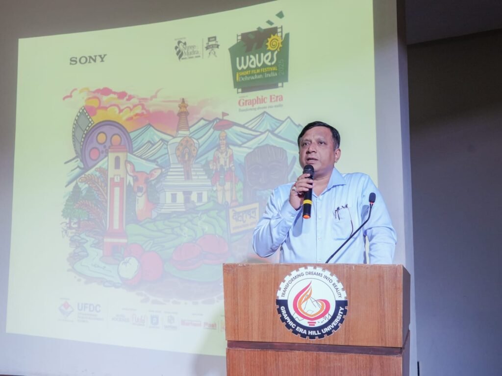 देहरादून, 25 जुलाई। ग्राफिक एरा हिल यूनिवर्सिटी का माहौल फिल्म, संगीत और अभिव्यक्ति के रंगों से भर गया जब शॉर्ट फिल्म फेस्टिवल ‘‘वेव्स‘‘ की शुरुआत हुई। उत्तराखंड फिल्म डेवलपमेंट काउंसिल के सीईओ व आईएएस श्री बंशीधर तिवारी ने कहा कि आज के दौर में कंटेंट ही असली आधार है फिर चाहे वह सिनेमा हो, पत्रकारिता हो, या सोशल मीडिया।